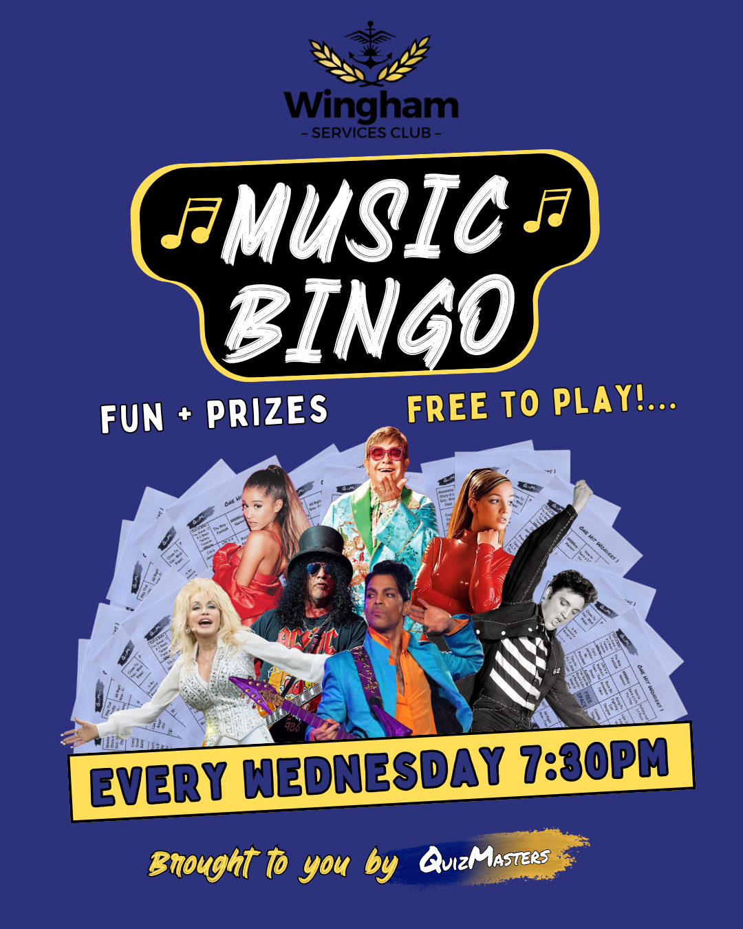 Wingham Services Club Events What’s on at Wingham Services Club Upcoming Events Event Types Weekly What's On (6)Raffles (2)Ticketed Events (3)Free Entertainment (3) Sydney HotshotsFriday 27th March 2026 | 07:00 PMTwo Fires – Chisel BarnesFriday 28th August 2026 | 07:00 PMMamma Mia Drag Queen BingoSaturday 06th June 2026 | 07:00 PMBingo Every Thursday from 11am